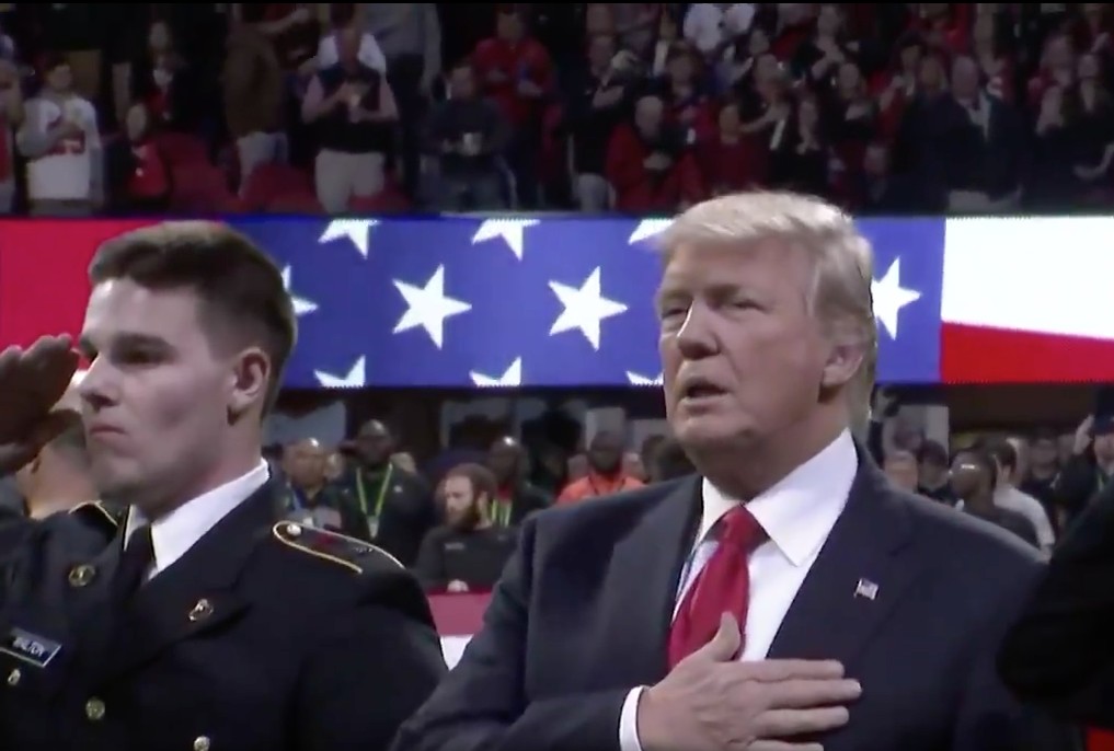 Please Rise for Trump's Bizarre Rendition of the National Anthem